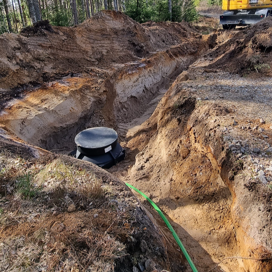 Vi har schaktat klart i området, lite återställningsarbete kvarstår som inte kan utföras innan fiberanläggningen är 100% klar.