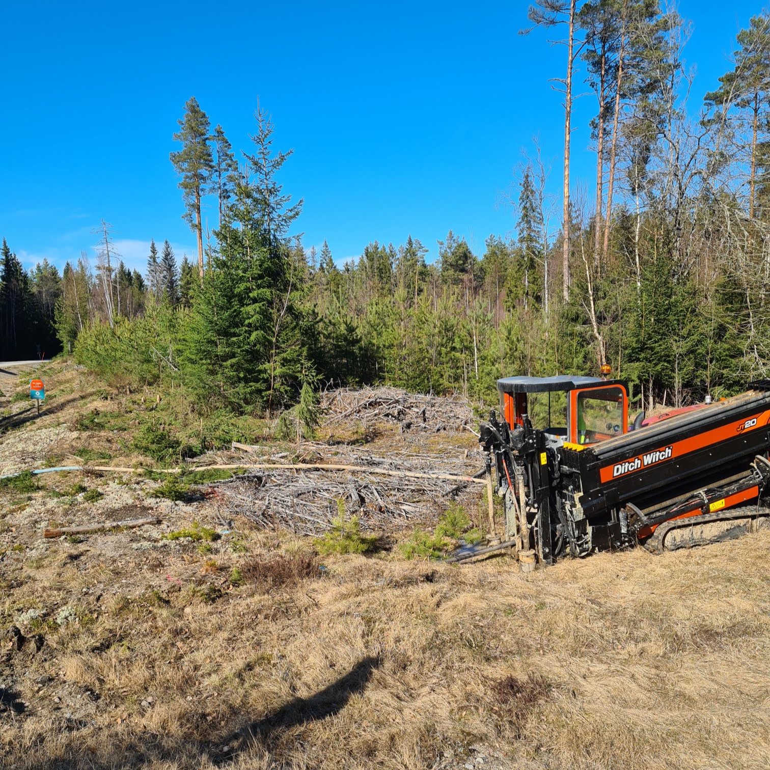 Nu har vi påbörjat arbetet vid alla vägkorsningar inne i och på vägen mot Karlsdal, dessutom pågår avverkning av träd efter vägen till Karlsdal. Idag påbörjas också förläggning av kanalisation till husen utmed väg 725.