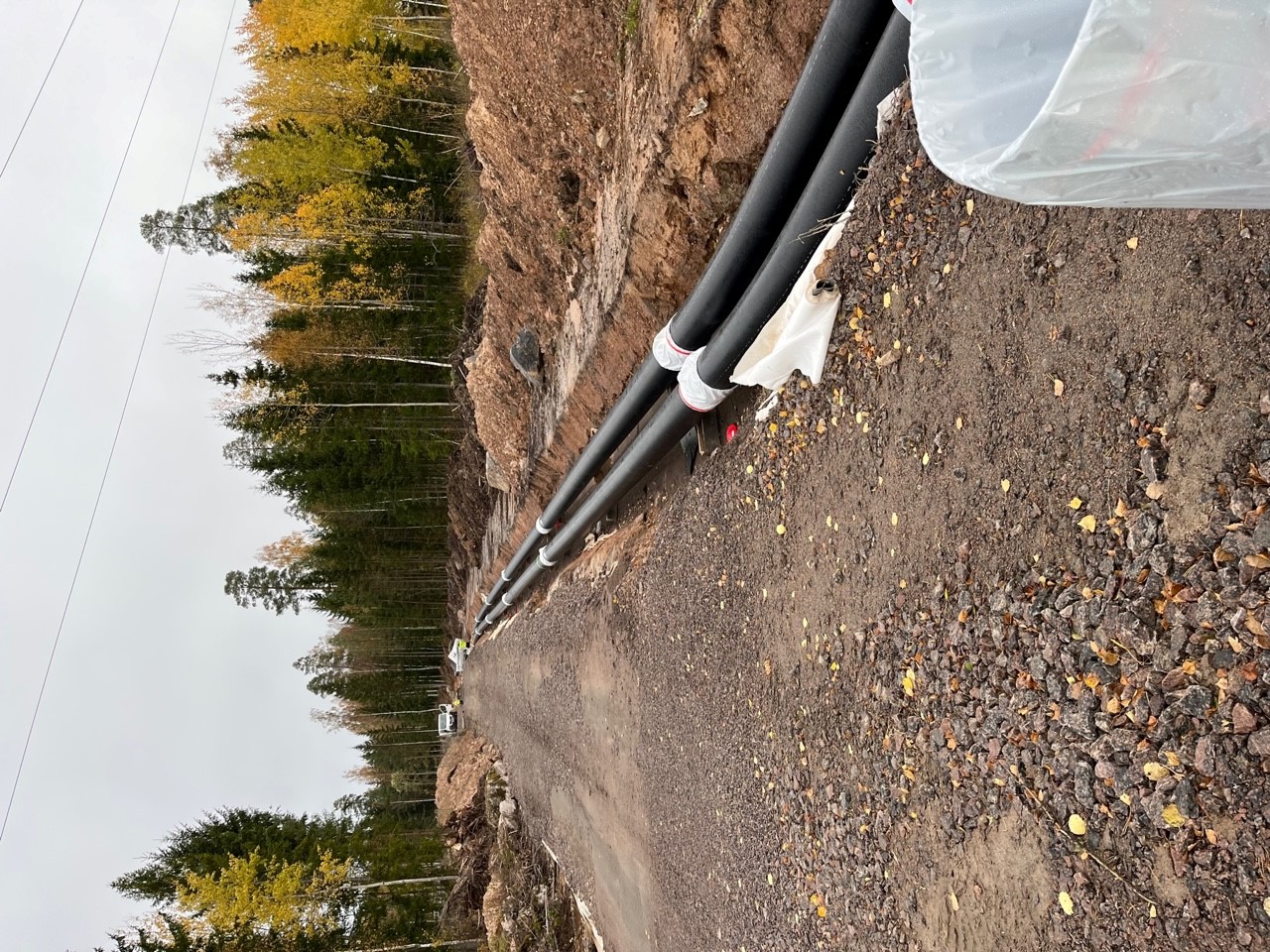 Vid Industrigatan går arbetet riktigt bra. Här ligger cirka 500 meter svetsad fjärrvärmeledning, se bilder nedan. Samtliga kontroller utförs under veckan och därefter kan schaktet fyllas igen och återställas.