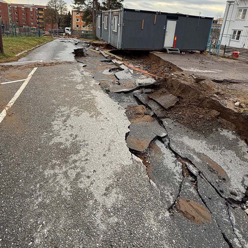 På förmiddagen den 12 november började vatten flöda i backen från Karlskoga IP ner mot Bregårdsgatan. Orsaken var en trasig vattenledning i marken och det dröjde inte länge förrän asfalten sprack och lyftes underifrån av trycket.